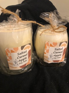 Slow burning soy wax candle with crackling wooden wick. Strong autumn scent of homemade apple crisp drizzled with sweet carmel.